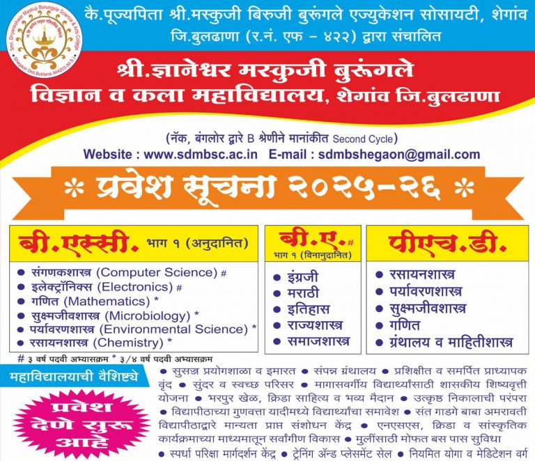 The society is established by our Hon’ble founder president Late Shri. Dnyaneshwar Maskuji Burungale in 1983, looking towards the need quality based education in Shegaon town along with a group of visionary and strong commitment towards education peoples as directors of the society. The society is running Shri Maskuji Biruji Burungale Vidyalaya, Shri Dnyaneshwar Maskuji Burungale Arts and Science Junior College, Shri Dnyaneshwar Maskuji Burungale Science and Arts College , Shri Ramkrishna Maskuji Burungale Marathi Prathmik School and Rugved Computers, Shegaon.